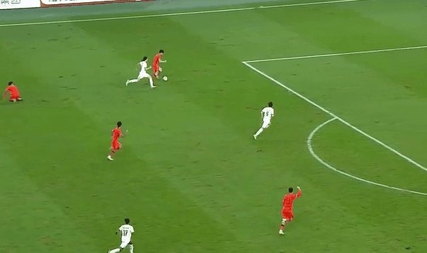 下半场回来,不到三分钟,吾米提江后场停球失误,对手断球形成单刀!吾米提江直接拉倒对手,裁判直接出示黄牌警告。但是从慢动作来看,吾米提江已经是最后一名防守球员,应该出示红牌罚下,裁判手下留情。
