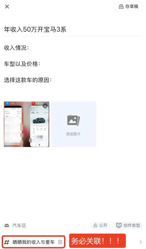 标题:年收入+开的车型(例如:年收入50万开宝马3系)