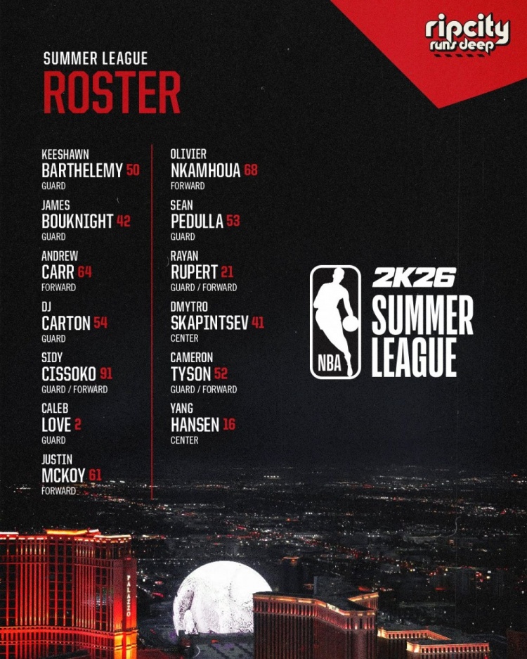 7月5日讯 开拓者官方公布了夏季联赛大名单,中国球员杨瀚森领衔。