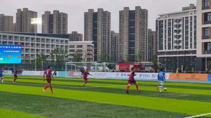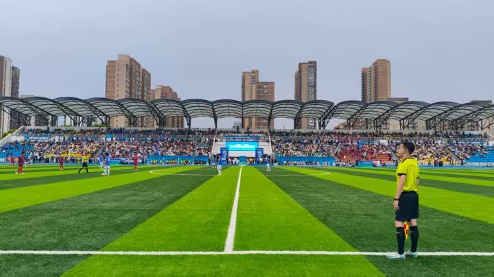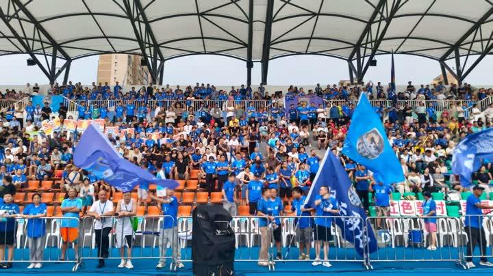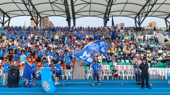 另一边,生态科技新城球迷协会的120人“助威天团”同样气势十足,统一的着装、响亮的口号,嘹亮的歌声,让客场球迷的热情丝毫不输主场。